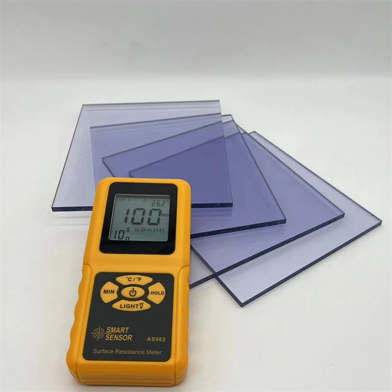 ஜியாங்சு ஆண்டிஸ்கோவின் ஆன்டி ஸ்டேடிக் பிவிசி ஷீட் உயர் தொழில்நுட்ப சூழலில் மின்னியல் வெளியேற்றத்தால் ஏற்படும் சவால்களை எதிர்கொள்ளும் வகையில் வடிவமைக்கப்பட்டுள்ளது. மேம்பட்ட பூச்சு தொழில்நுட்பத்தைப் பயன்படுத்தி, நிலையான PVC க்கு நீடித்த எதிர்ப்பு-நிலை அடுக்கு பயன்படுத்தப்படுகிறது, இது 10^6 மற்றும் 10^8 Ω இடையே மேற்பரப்பு எதிர்ப்பு நிலைகளை அடைகிறது. பூச்சு நிரந்தரமானது, ஆல்கஹால் அடிப்படையிலான கரைப்பான்களுடன் கூட அகற்றுவதை எதிர்க்கும், தாளின் தெளிவு மற்றும் அழகியலைப் பாதுகாக்கும் போது நீண்ட கால நிலையான பாதுகாப்பை உறுதி செய்கிறது.
